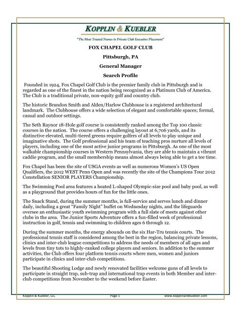 Fox Chapel Golf Club Pittsburgh Pa Kopplin Amp Kuebler